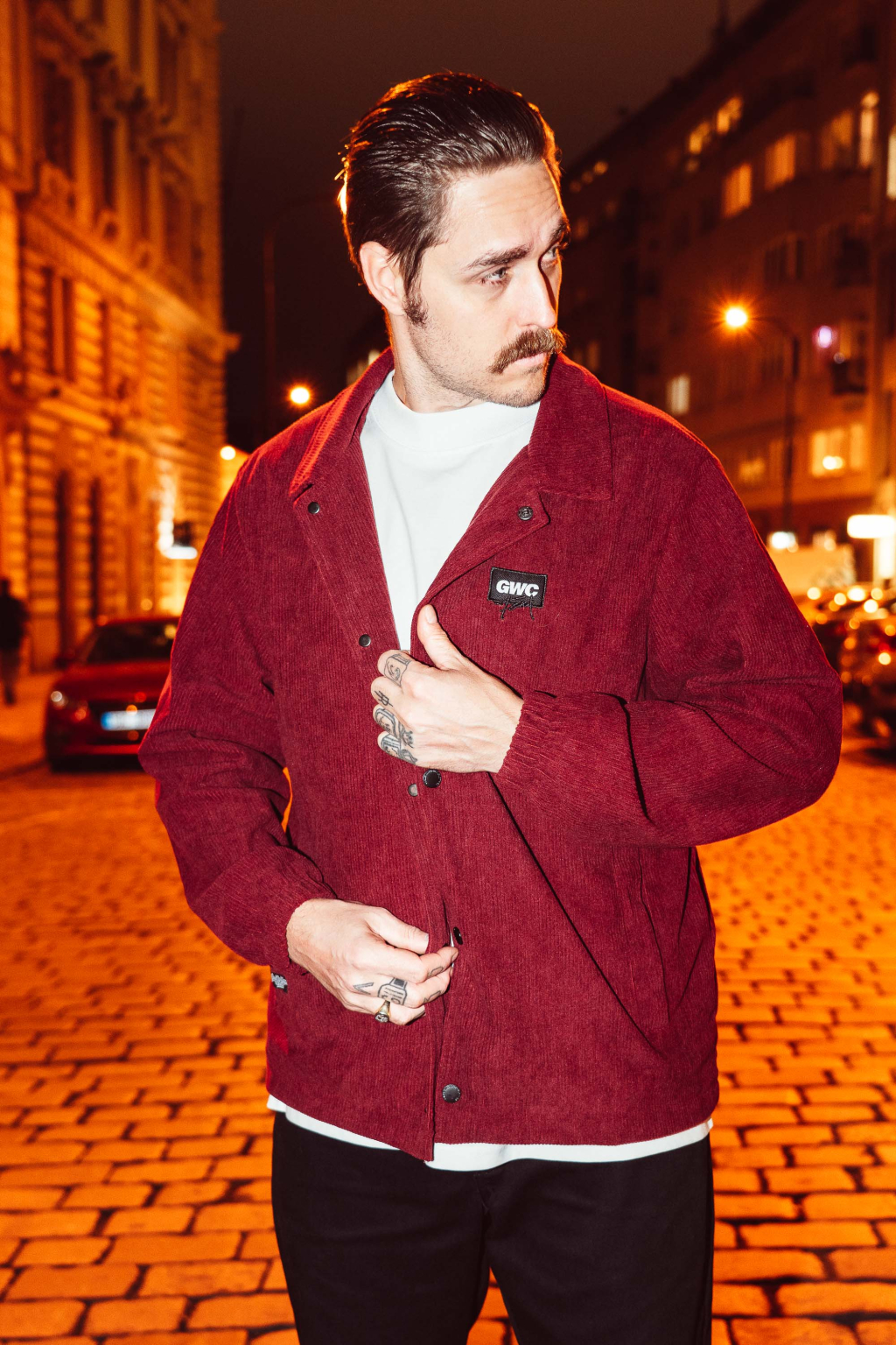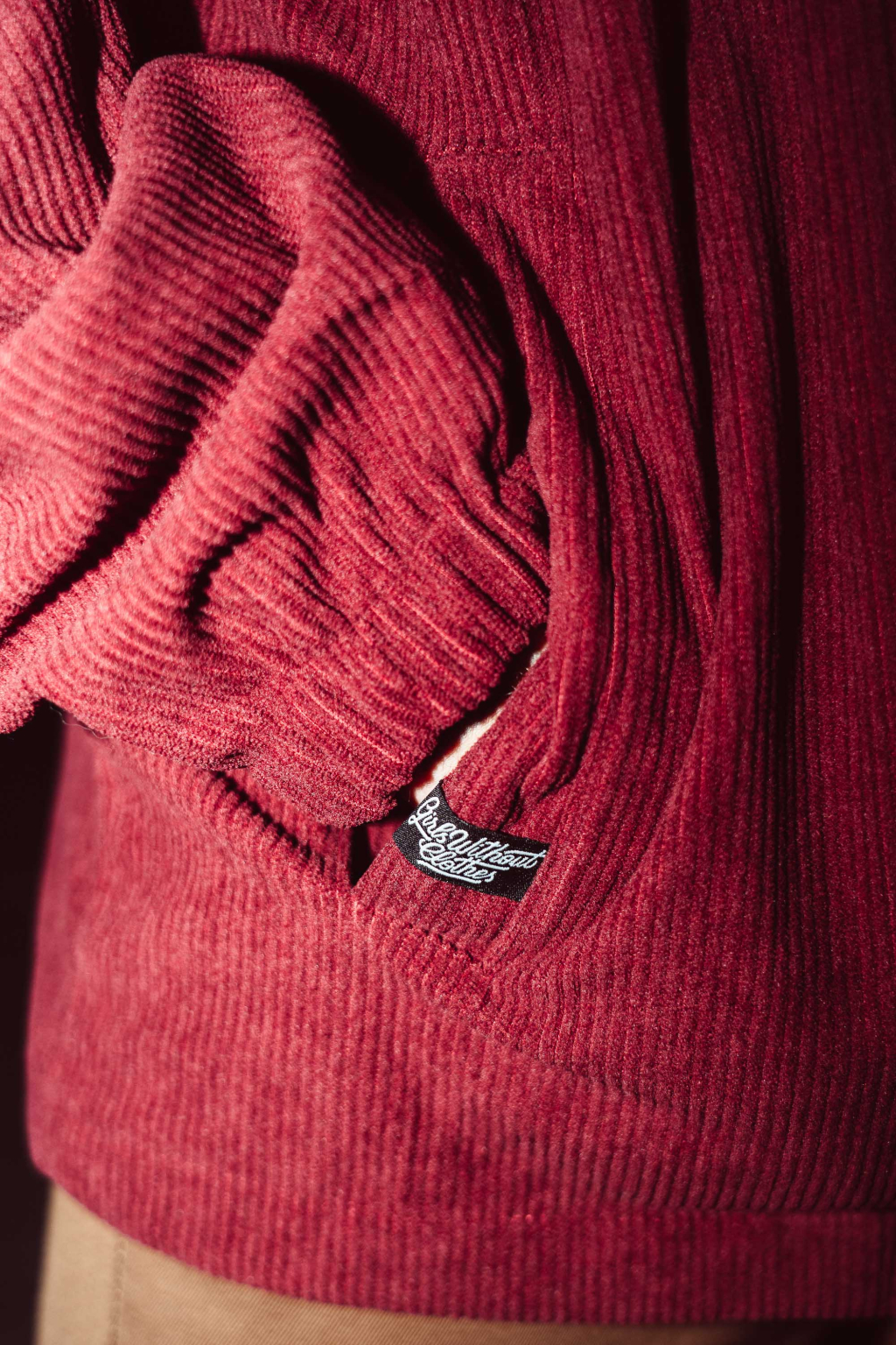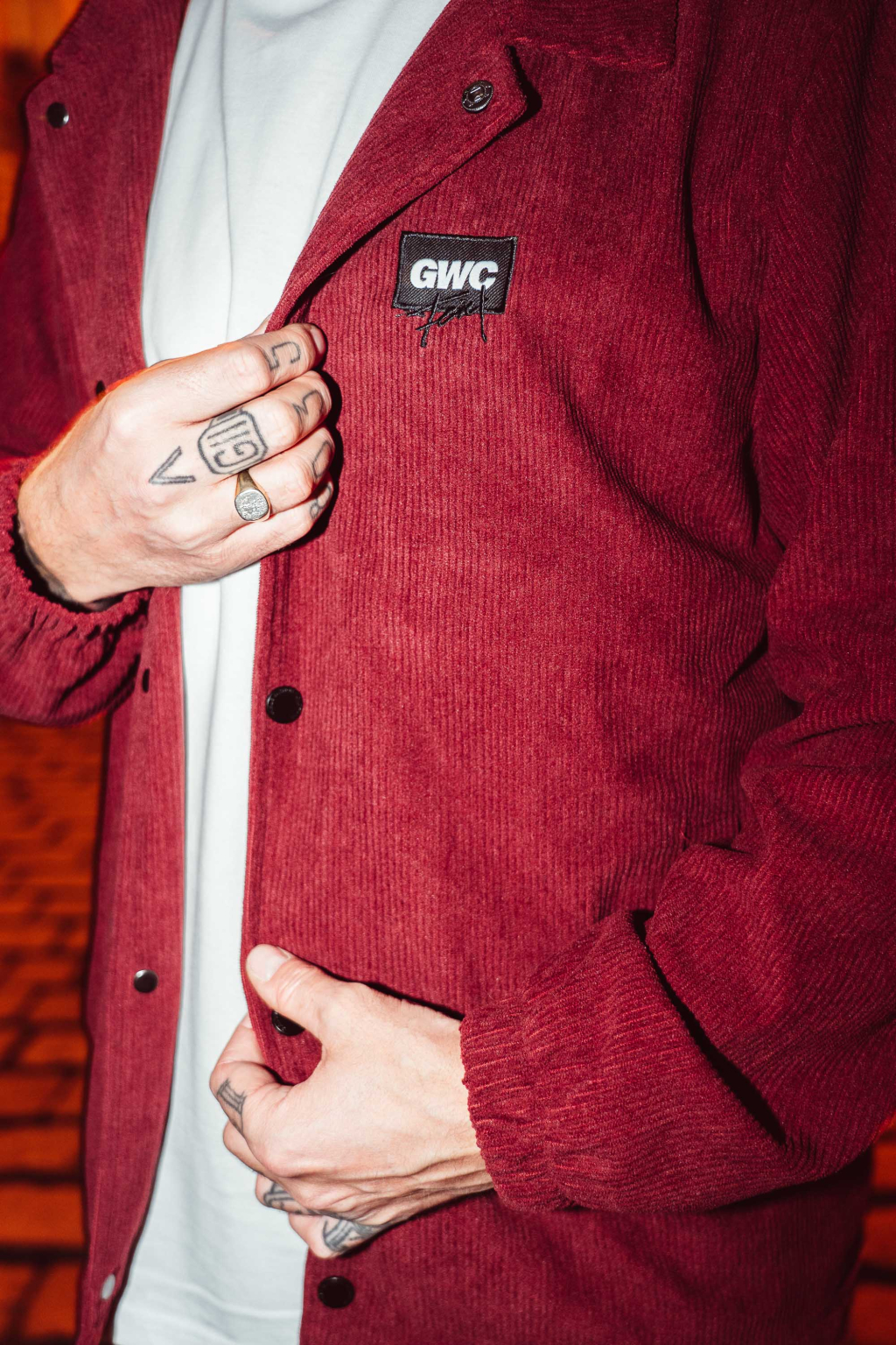 Ušitá z měkkého manšestru, s decentní výšivkou „GWC“ a spoustou promyšlených detailů.