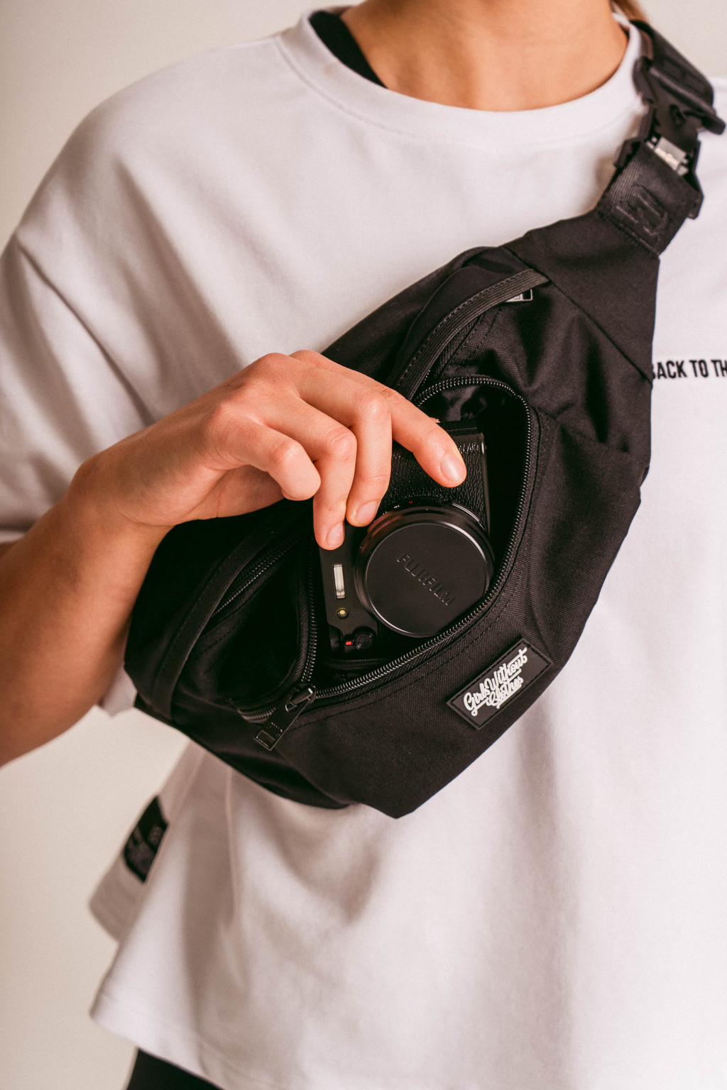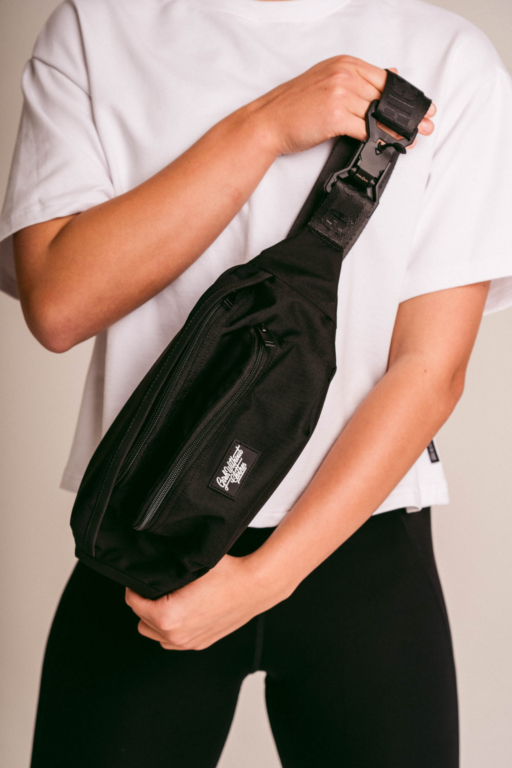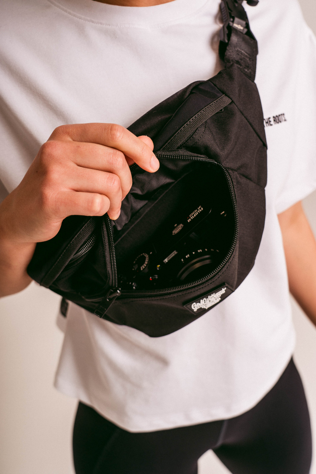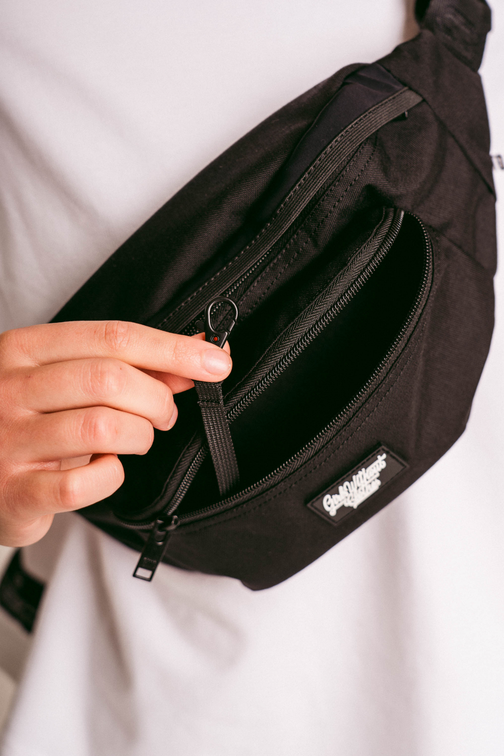 Foťák, telefon, klíče a cokoliv dalšího potřebuješ s sebou na procházku do hor, nebo do města. To všechno se ti do naší ledvinky vejde. Má celkem tři kapsy. Hlavní kapsa je ta největší. Menší kapsa vepředu má v sobě karabinku na klíče, nebo na cokoliv, co si budeš chtít připnout, aby ti to nevypadlo. Na kapse je našitý silikonový štítek s logem. A třetí kapsa je zezadu ledvinky. Ta je na tvoje největší cennosti. A teď zlatý hřeb celé ledvinky, spona. Je od značky Fidlock a je magnetická. Jen tak se ti nerozepne. Popruh je obrandovaný, stejně jako zipy. Takže i zezadu budou všichni vědět, co se teď nosí.