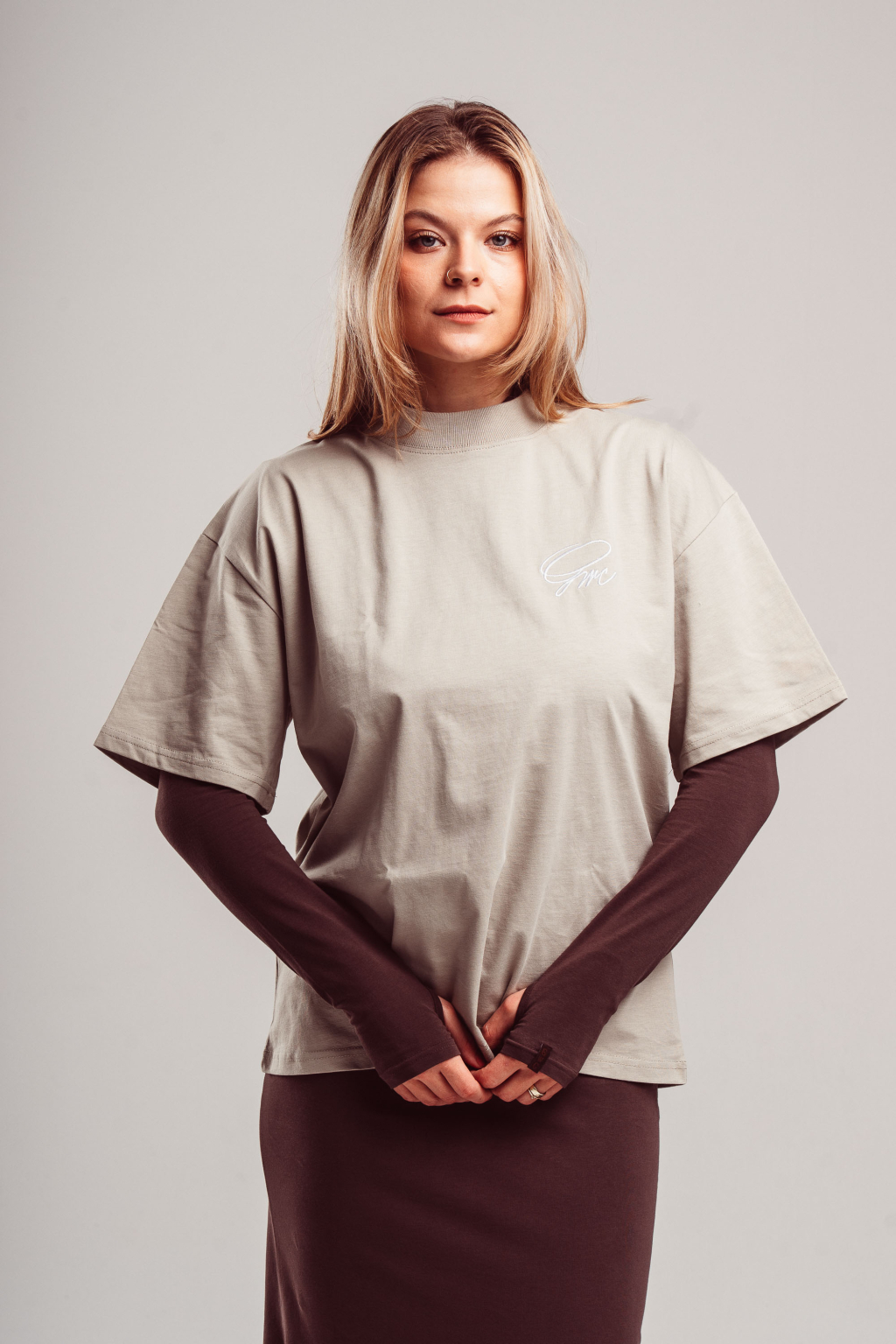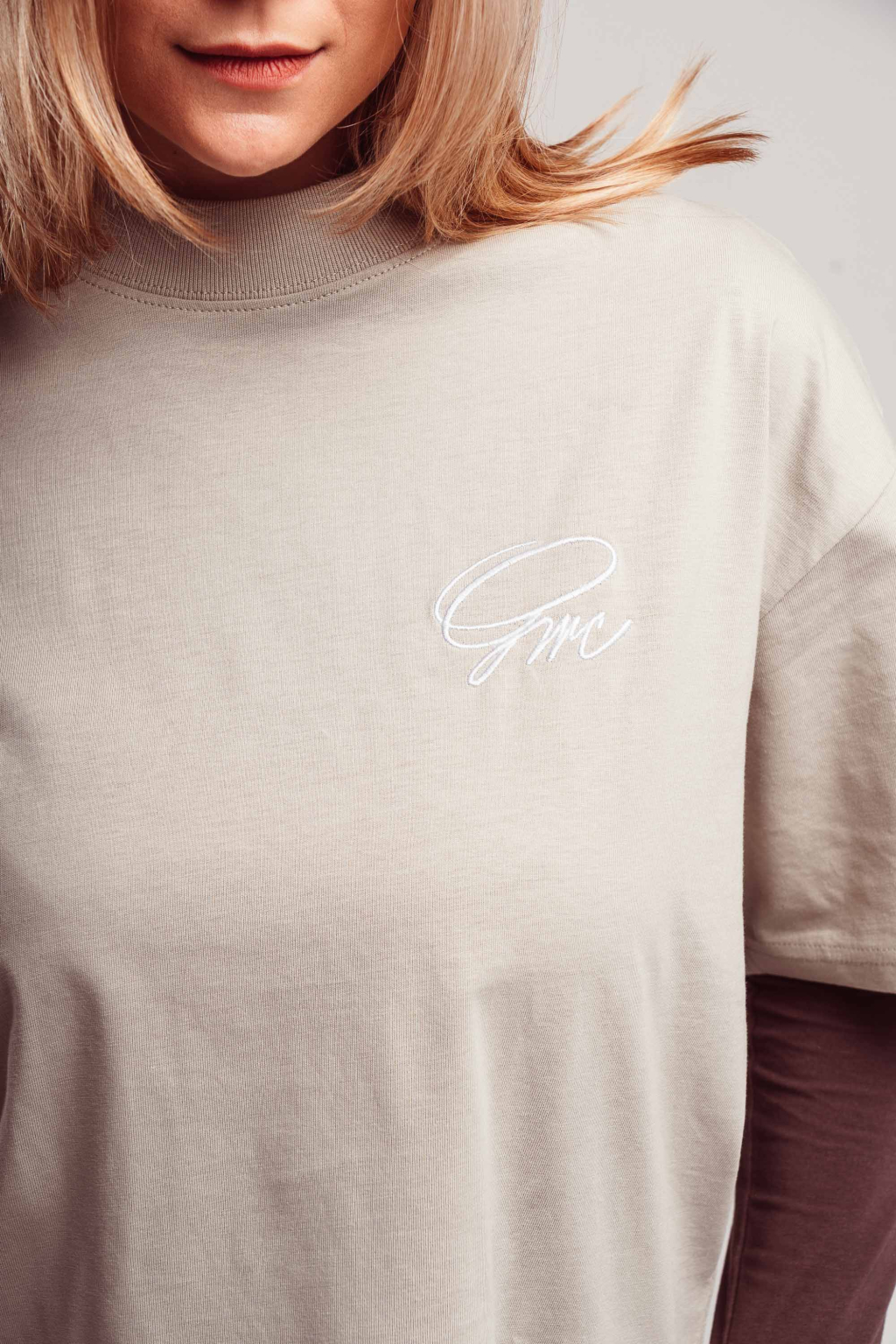 Minimalistická GWC výšivka na hrudi jako jediný detail — přesně tolik, kolik stačí.
